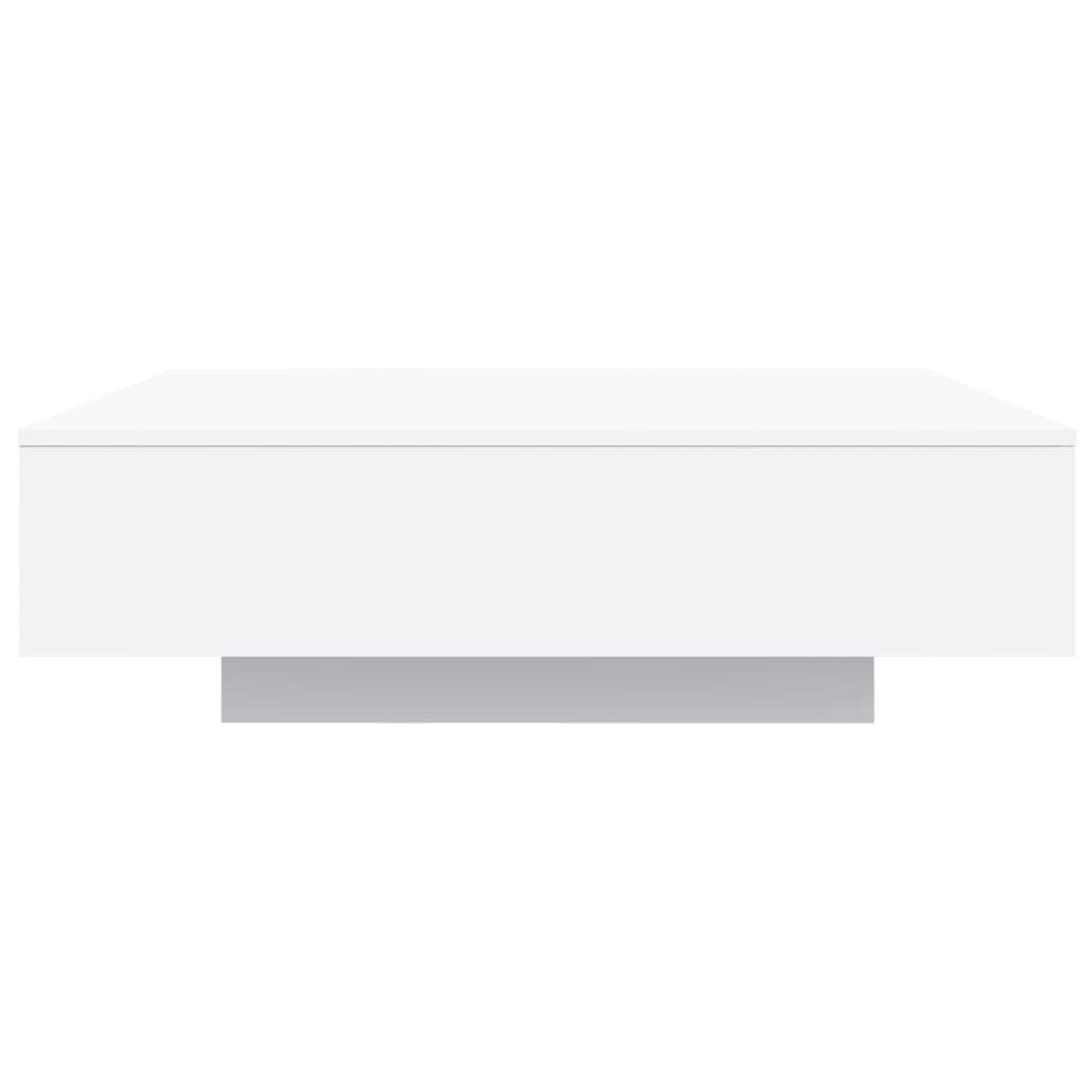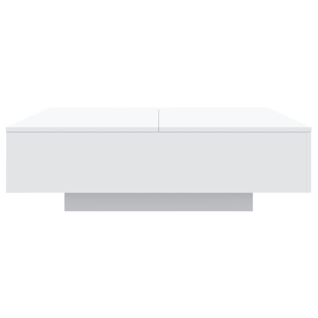 Decorate your living room with this modern coffee table with LED lights, it easily blends with furniture in any style at your house. Durable material: The engineered wood is of exceptional quality with a smooth surface and features strength, stability and resistance to moisture.Sturdy tabletop: The sturdy tabletop of this side table provides a secure surface, on which you can place drinks, vases, fruit bowls or ornaments.Versatile design: This sofa table can meet your different requirements for it can be used as a side table, tea table or telephone table.Adjustable LED lights: The couch table is equipped with vibrant RGB LED lights. With various customisable menus, you can effortlessly change the colour of the lights and even set them to adjust automatically. These LED lights not only enhance the contemporary look of the centre table but also add to its trendy appeal. Good to know:The product has a USB connector that requires a certified 5V USB power source (not included).