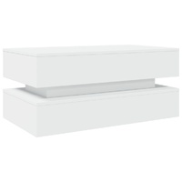 Decorate your living room with this modern coffee table with LED lights, it easily blends with furniture in any style at your house. Durable material: The engineered wood is of exceptional quality with smooth surface and also features strength, stability and resistance to moisture.Sturdy tabletop: The sturdy tabletop of this side table provides a secure surface, on which you can place drinks, vases, fruit bowls or ornaments.RGB LED lights: The couch table is equipped with vibrant RGB LED lights. With various customisable menus, you can effortlessly change the colour of the lights and even set them to adjust automatically. These LED lights not only enhance the contemporary look of the centre table but also add to its trendy appeal.Versatile design: This sofa table can meet your different requirements for it can be used as a side table, tea table or telephone table. Good to know:The product has a USB connector that requires a certified 5V USB power source (not included).