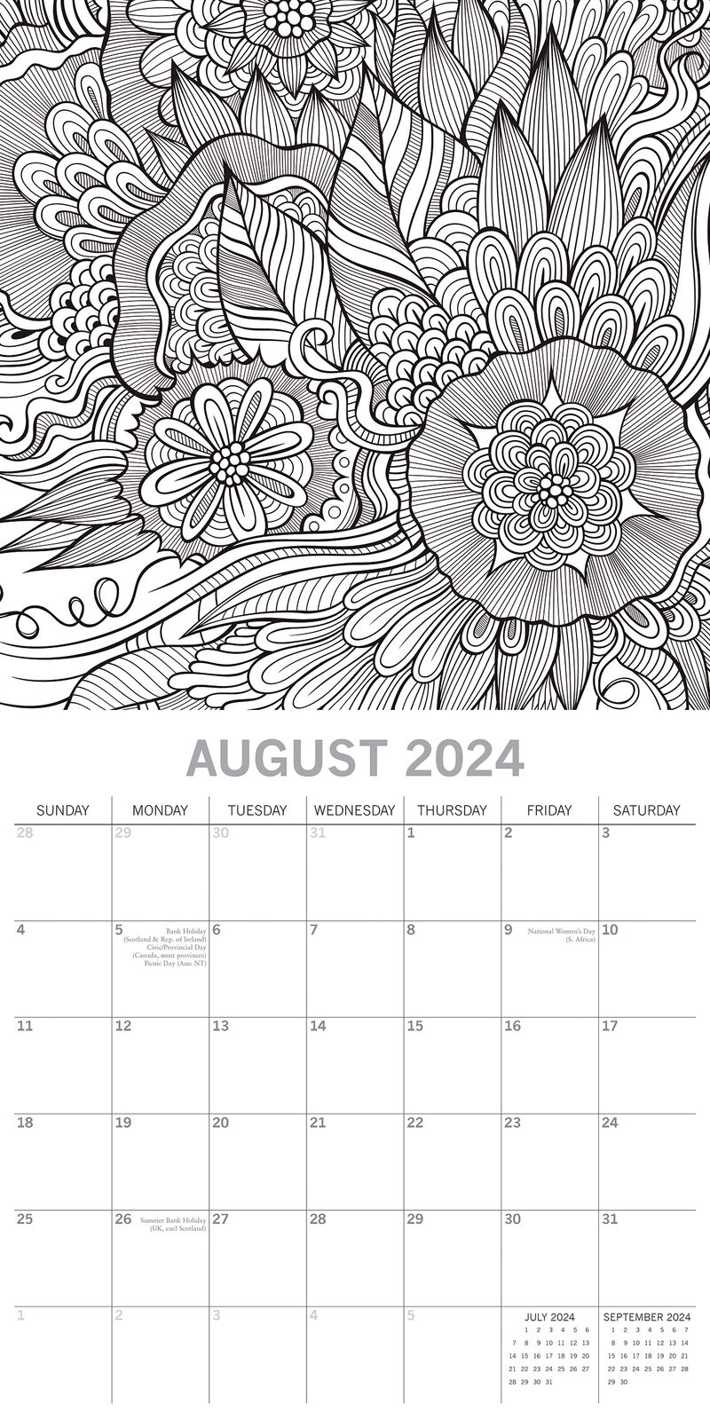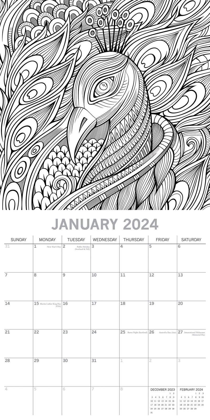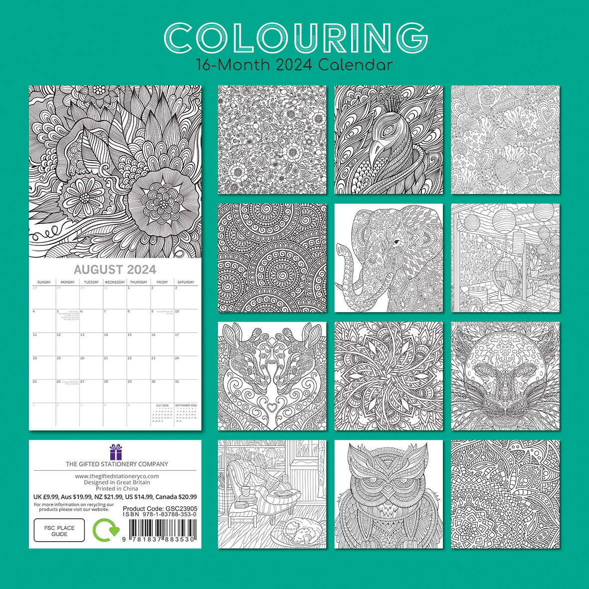 Colouring Calendar - 2024 Square Wall Calendar 16 Months Lifestyle Planner Gift