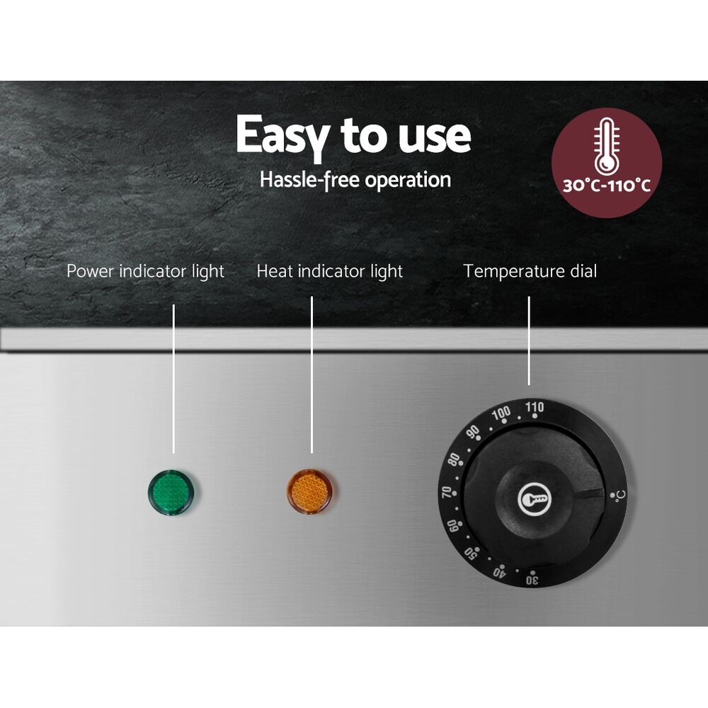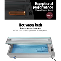 $228.41Keep pre-cooked food at perfect ready-to-eat temperatures for extended periods or cook delicate foods such as sauces and mousses with our Commercial Bain Marie. Just fill the removable water bath with water up to about 3cm above the heating element and place the three removable food-grade stainless steel pans on top. Set the temperature between 30°C and 110°C with the rotary dial and the bain marie heats up the water to generate gentle and even heat that keeps the food warm without sticking, burning or drying out. The bain marie comes with additional useful features such as detachable tempered glass doors for easy cleaning, drain tap to easily drain excess water and non-slip rubber feet for a firm stand. Perfect for commercial settings such as buffets, takeaway eateries and catering, or even at home for large parties, our bain marie is sure to make a lovely dining experience for everyone.