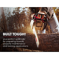 The massive 24 inch bar sports a 12 toothed sprocket nose for an excellent transfer of cutting power, from chain to wood. The premium full chisel chain utilises Baumr-AG's Tru-Sharp technology. These chains produce very little kick-back and accurate cuts as a result. An adjustable auto-chain lubricatorkeeps the chain well oiled and has a large dial for adjustments on the fly.
