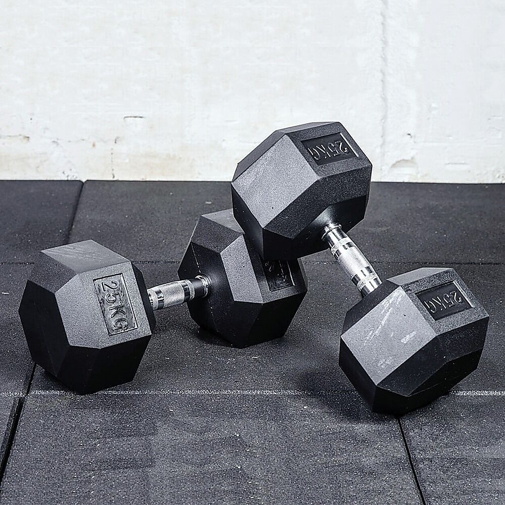 Order our rubber hex dumbbells and get the most out of your workout routine!