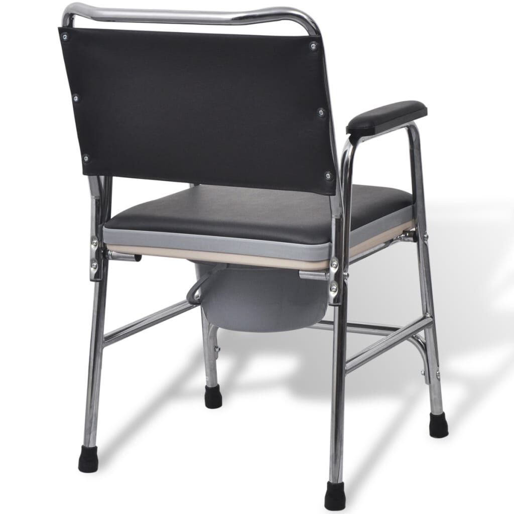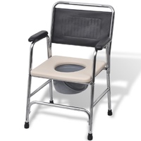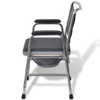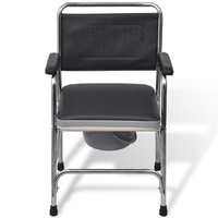 This commode chair presents a safe, comfortable and hygienic solution for the elderly or people with limited mobility, as it can be used as a bedside makeshift toilet. This durable commode chair can support up to 100 kg and is able to withstand daily use. The chair is equipped with an extra-large commode bucket that can be removed and emptied. With the included seat cushion, the commode can be easily converted to a chair. Made of strong steel, the commode chair is lightweight and sturdy. The backrest and armrests are padded, which makes the toilet chair comfortable to sit on. Each leg has a non-slip tip to provide extra stability and safety. The padded armrests have been designed to give support while standing. Assembly is very easy.