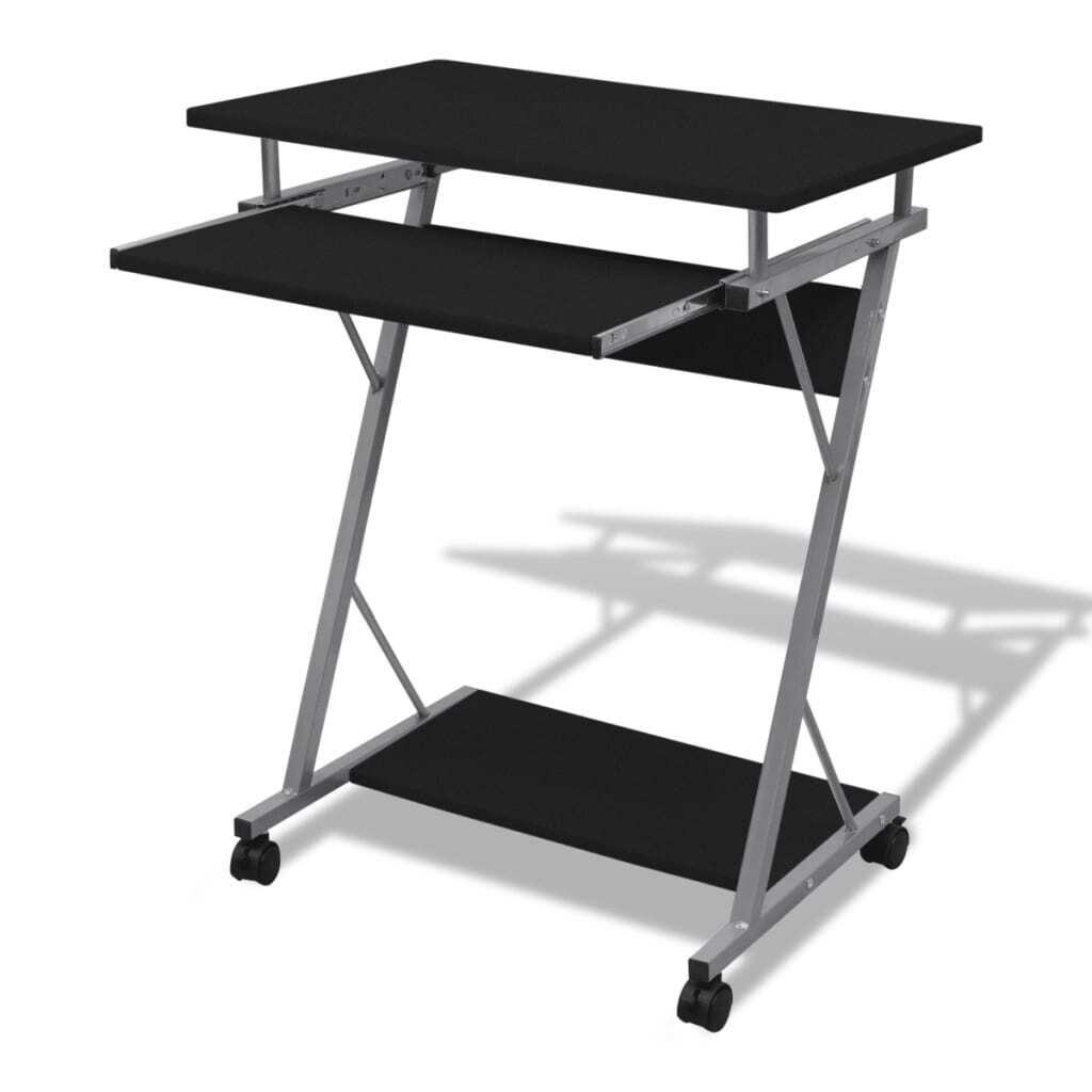 $65.79The compact computer desk for laptop and desktop is designed for space saving and will be a real eye-catcher in your room thanks to its modern stylish look. The large work surface allows you to comfortably use your computer and use writing materials. This computer desk is designed with a sliding keyboard section and a bottom shelf for CPU tower or printer. Constructed of particle board and powder-coated steel frames, this computer desk will surely bring you years of service. Care instructions: wipe clean with clean damped cloth. The installed castors are designed for convenient mobility.