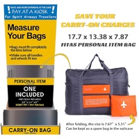 Simplify your travels with thissmart, space-saving foldable duffel bagengineered for modern adventurers who value convenience, durability, and style. Designed to meet airline personal item size standards, it easily fits in overhead bins or under seats, making it perfect for carry-on travel, weekend getaways, business trips, or as a compact gym bag. Its sleek profile combines functionality with fashion, featuring a vibrant accent panel and thoughtful details like a front zippered pocket for quick access to essentials. The integrated luggage sleeve allows you to slide it securely over your suitcase handle, keeping all your belongings together while maximizing mobility. Made from high-quality waterproof nylon, the bag resists spills, rain, and daily wear, while reinforced stitching ensures long-term strength. When not in use, it folds down into a small, zippered pouch that takes up barely any roomideal for storage or as a backup pack during longer trips. Whether you're heading to the airport, hitting the gym, camping, or shopping, this versatile bag adapts seamlessly to every lifestyle.