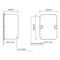 At only 102 mm deep and 256mm in length, this high-speed dryer fits in the most confined spaces. It offers quick drying with an infrared sensor, auto-resetting thermostat, and adjustable airspeed and temperature. Features include on/off heating options, and the dryer automatically shuts off after a time-out period. Accessible compliant per AS1428.1 guidelines, it can be hard-wired by an electrician or used with the provided cord and plug.