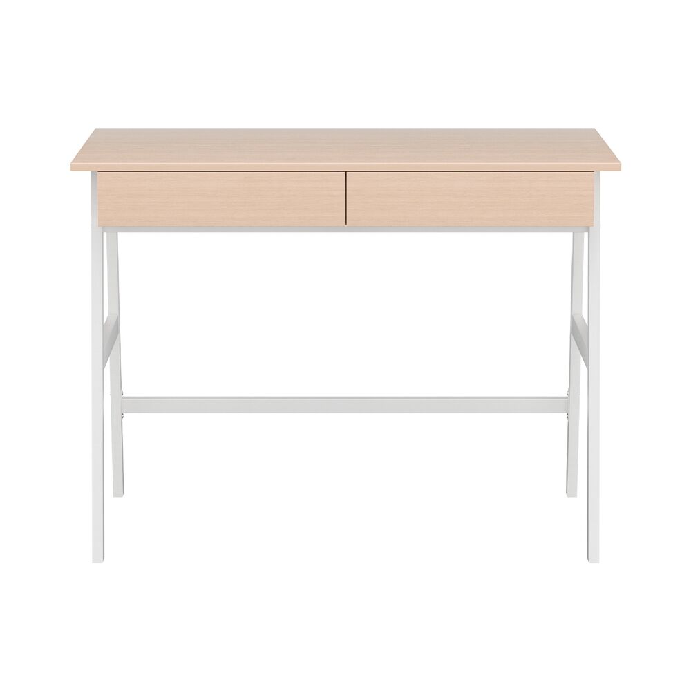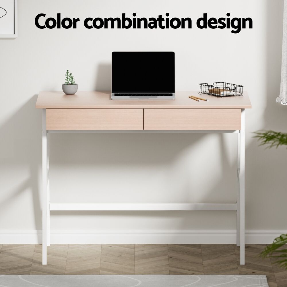 The exceptionally thick particle board with melamine veneer table top gives not only a smooth feel but good durability and easy maintenance with longlasting use. Two storage drawers with concealed handles provide ample storage space for all your work essentials and more. Not least, the asymmetrically-angled legs and under-desk steel slats ensure better load-carrying stability and facing up to robust use.