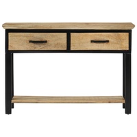 This versatile wooden console table adds style and storage to your entryway, living room, or hallway.Durable material: Solid mango wood is a strong, tropical hardwood that makes sturdy furniture. Its beautiful wood grains make every piece of furniture slightly different from the next.Storage space: The hall table is equipped with 2 drawers and a shelf for keeping your keys, cards, glasses, or some frequently-used items when hanging out.Spacious top: This side table features a spacious top surface that provides you with the perfect amount of space to highlight your important items, like decorative ornaments, a vase of flowers, framed photos, etc.Metal feet: The metal feet add a modern and calm style to your interior while ensuring stability.Warning:To prevent it being overturned, this product must be used with the provided wall attachment device.Note:The colours may vary from piece to piece, making each piece unique and slightly different from the next. The delivery is random.
