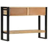This versatile wooden console table adds style and storage to your entryway, living room, or hallway. Durable material: Solid mango wood is a strong, tropical hardwood that makes sturdy furniture. Its beautiful wood grains make every piece of furniture slightly different from the next.Storage space: The hall table is equipped with 2 drawers and a shelf for keeping your keys, cards, glasses, or some frequently-used items when hanging out.Spacious top: This side table features a spacious top surface that provides you with the perfect amount of space to highlight your important items, like decorative ornaments, a vase of flowers, framed photos, etc.Metal feet: The metal feet add a modern and calm style to your interior while ensuring stability.Warning:To prevent it being overturned, this product must be used with the provided wall attachment device.Note:The colours may vary from piece to piece, making each piece unique and slightly different from the next. The delivery is random.