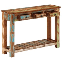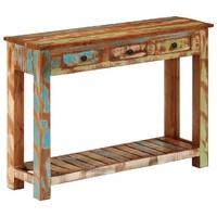 This wooden console table will make a practical and decorative addition to your home decor. Solid reclaimed wood: Solid reclaimed wood consists of reused timbers such as teak, mango wood, pinewood, and beech. These materials are recycled from old buildings such as factories, sheds, and boats. As every piece is handmade, colours will vary for each product.Suitable for any interior: With its simple look, the stylish yet versatile table seating will make a great addition to any area of the house. It also matches perfectly today's trends.Easy to clean: The surface is easy to clean with a damp cloth. Warning:To prevent it from tipping over, this product must be used with the wall attachment device (not provided). Good to know:The colours may vary from piece to piece, making each piece unique and slightly different from the next. The delivery is random, ensuring the exclusivity and individuality of your product.