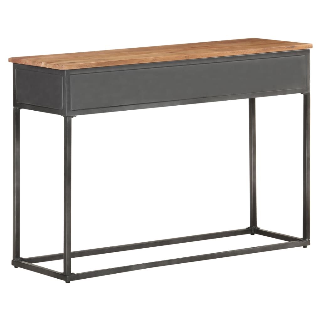 Introduce an air of industrial charm into your home decor with this stylish wooden console table! This hall table is made of solid acacia wood, making it sturdy and stable. The craftsmanship and the beautiful wood grains make every piece of furniture unique and slightly different from the next. The table for under mirror is equipped with ample storage room, so you can display or keep any items you'd like well organised. What's more, the steel base adds to its sturdiness. Important note: The wood grains and colours vary from piece to piece, making each wooden table unique.