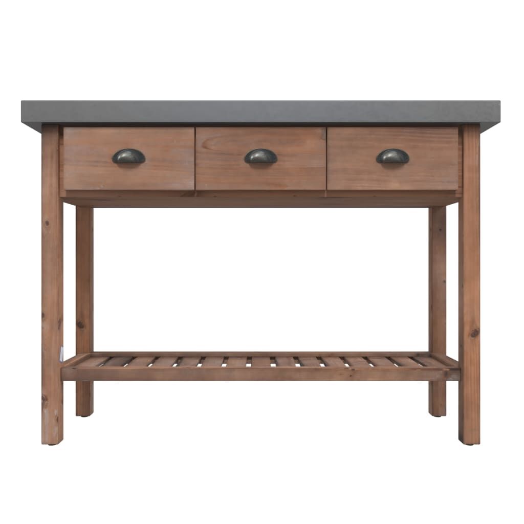 Introduce a unique charm into your living space with this stylish console table! Premium material: Solid fir wood is a beautiful natural material. Fir wood doesn't dry out or warp when exposed to moisture.Ample storage space: The side table features 3 drawers and a shelf, offering storage space to store your keys, plants, scented candles and other decorative items.Sturdy top: The hall table has a sturdy iron tabletop, making it ideal for displaying decorative objects, photo frames, potted plants, etc. Warning:In order to prevent overturning, this product must be used with the wall attachment device provided.