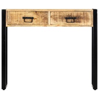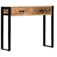 If you're looking for a simple touch of the rustic as well as industrial charm to add to your interior decor, our solid wooden console table will do the trick. This table is made of solid mango wood, which is a hardwood with dense grains. Rough mango wood on the one hand has the strength to bear the weight, on the other hand stand the wear and tear of time. Accordingly, this beautifully-designed hall table is exceedingly stable, durable and eye-catching. The exquisite craftsmanship and the beautiful wood grains make every piece of furniture unique and slightly different from the next. Additionally, equipped with 2 drawers, the table provide ample space for storing your personal belongings and will keep your room tidy. Important note: Colours and wood grain vary from piece to piece, making each of our tables unique. The delivery is random, ensuring the exclusivity and individuality of your product.