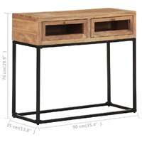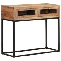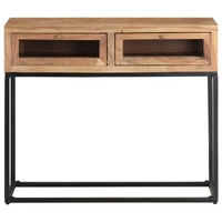 Introduce an air of industrial charm into your home decor with this stylish wooden console table! This hall table is made of solid acacia wood, making it sturdy and stable. The craftsmanship and the beautiful wood grains make every piece of furniture unique and slightly different from the next. The table for under mirror is equipped with 2 drawers, so you can display or keep any items you'd like well organised. What's more, the steel base adds to its sturdiness. Important note: The wood grains and colours vary from piece to piece, making each vitrine cabinet unique.