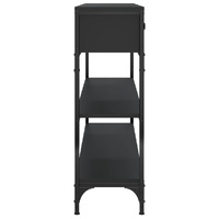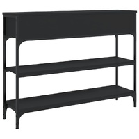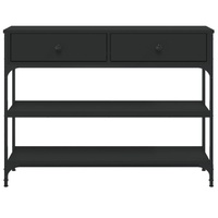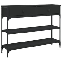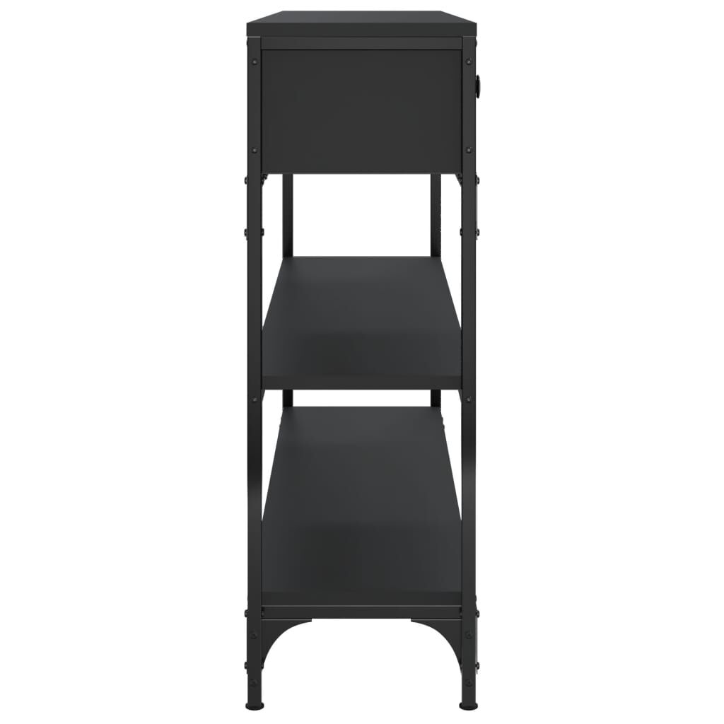 Add a touch of elegance to your entryway, living room, or hallway with this stylish console table. Durable material: The engineered wood is of exceptional quality with smooth surface and also features strength, stability and resistance to moisture. Made of engineered wood, the sofa table is easy to clean.Ample storage space: The hall table offers ample storage space for keeping your magazines, books, decorative items, and other daily essentials well-organised and within reach.Adjustable feet: Four adjustable feet with plastic pads keep the hallway table balanced on uneven ground and increase stability.Metal frame: The metal frame adds an industrial style to your interior while ensuring durability and stability. Warning:To prevent it being overturned, this product must be used with the provided wall attachment device.