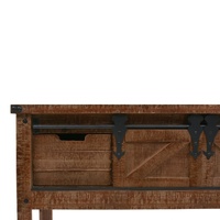 This classic wooden console table will make a decorative addition to your rooms. It can also be used as a side table or end table. This highly stable and durable side table was crafted from solid fir wood, which exudes vintage charm and gives its rustic characteristics. The sturdy top is ideal for displaying decorative items like vases, photo albums, or potted plants, or for keeping snacks and drinks. The console table has ample space for keeping your various items neatly organised. The unique sliding track design helps the door to easily open and close and also adds to the table's vintage and industrial style. This console table is easy to assemble.