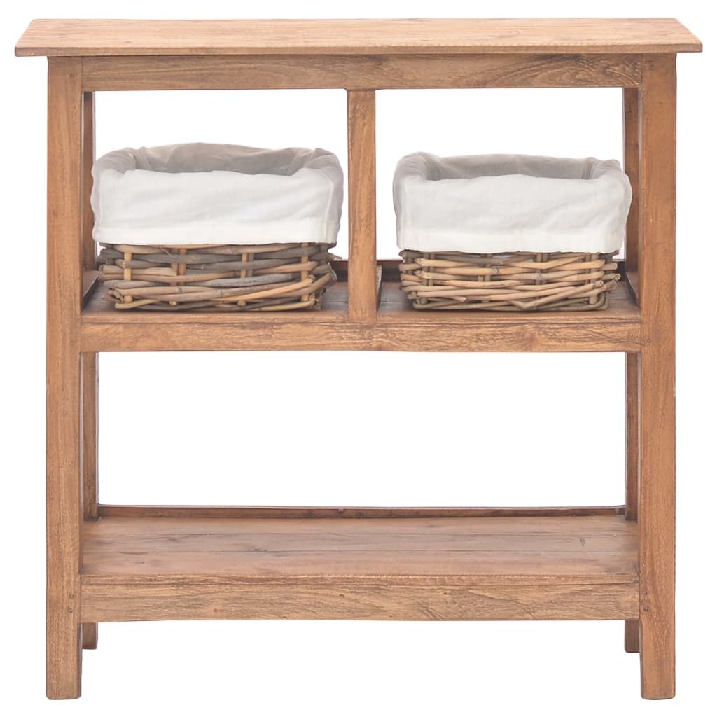 This wooden console table will be a perfect choice if you are looking to add a touch of rustic charm to your home decor. The table has 2 removable rattan baskets and 1 shelf, providing ample storage space. The removable baskets are not only practical but also add a decorative touch. Made of solid mahogany wood, this solid wood console table is exceedingly durable and sturdy. Mahogany is a tropical hardwood, standing out with its beauty, durability and color. Special craftsmanship has been used to give this item a vintage.warm and authentic look. Important note: The colours vary from piece to piece, making each of our tables unique. The delivery is random, ensuring the exclusivity and individuality of your product.