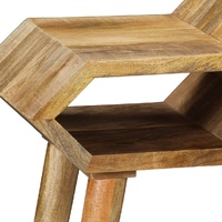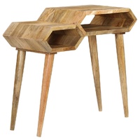 Our wooden console table with a retro style will make a great addition to your living room, bedroom, hallway, etc. The side table is made of solid mango wood that has been polished, painted and lacquered, but still has its natural colour and look. The table is entirely handmade, and the beautiful wood grains make every piece of furniture unique and slightly different from the next. The large tabletop is ideal for displaying decorative objects, photo frames or potted plants. Two compartments can be used to store items like magazines, notepads, books and other knick-knacks. The console table is easy to assemble. Important note: The colours vary from piece to piece, making each of our console tables unique. The delivery is random, ensuring the exclusivity and individuality of your product.