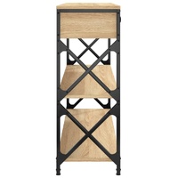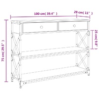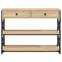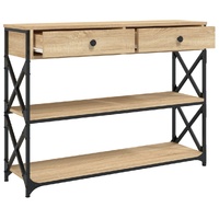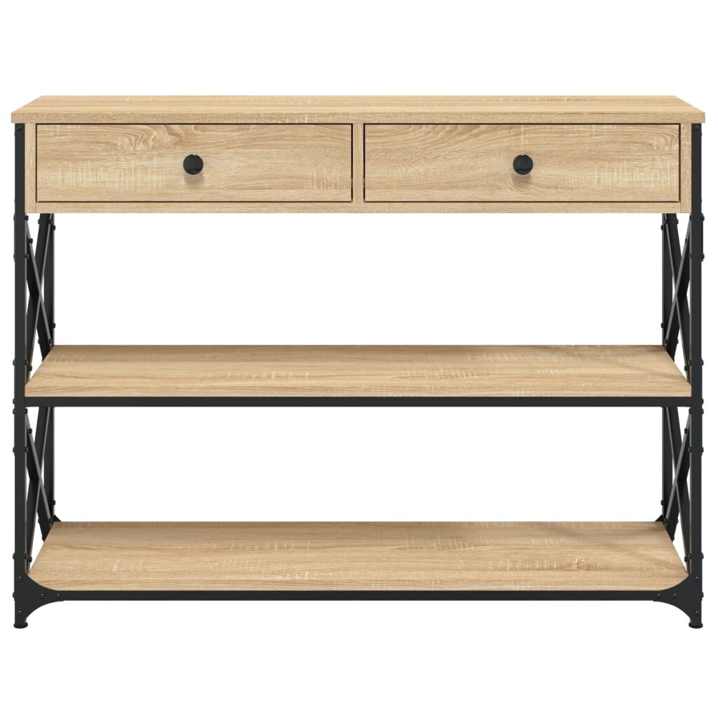 Add a touch of elegance to your entryway, living room, or hallway with this stylish console table. Durable material: The engineered wood is of exceptional quality with smooth surface and also features strength, stability and resistance to moisture. Made of engineered wood, the sofa table is easy to clean.Ample storage space: The hall table offers ample storage space for keeping your magazines, books, decorative items, and other daily essentials well-organised and within reach.Adjustable feet: Four adjustable feet with plastic pads keep the hallway table balanced on uneven ground and increase stability.Metal frame: The metal frame adds an industrial style to your interior while ensuring durability and stability. And the entry table has X-frame crossbars for added stability, so you don't have to worry about wobbling on the floor. Warning:To prevent it being overturned, this product must be used with the provided wall attachment device.