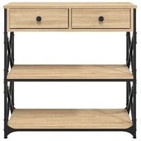 Add a touch of elegance to your entryway, living room, or hallway with this stylish console table. Durable material: The engineered wood is of exceptional quality with smooth surface and also features strength, stability and resistance to moisture. Made of engineered wood, the sofa table is easy to clean.Ample storage space: The hall table offers ample storage space for keeping your magazines, books, decorative items, and other daily essentials well-organised and within reach.Adjustable feet: Four adjustable feet with plastic pads keep the hallway table balanced on uneven ground and increase stability.Metal frame: The metal frame adds an industrial style to your interior while ensuring durability and stability. And the entry table has X-frame crossbars for added stability, so you don't have to worry about wobbling on the floor. Warning:To prevent it being overturned, this product must be used with the provided wall attachment device.