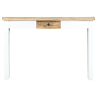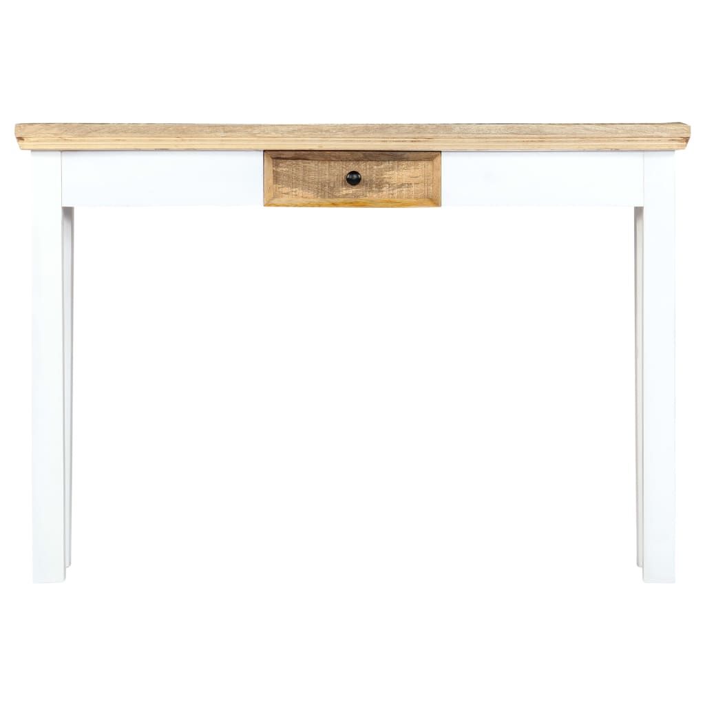 Introduce an air of elegant charm to your interior with our simple yet practical console table! Made of solid mango wood, the side table is exceedingly stable and durable. Mango wood is a dense and robust hardwood which has beautiful brown or golden streaks and contours on its surface. This wooden table with 1 drawers provides ample space for keeping your magazines, books, decorations, as well as various other small items within reach. Additionally, the wooden frame design adds to an attractive look. Important note: The mango wood shows natural grains, making each of the console table unique and slightly different from the next. The delivery is random, ensuring the exclusivity and individuality of your product.
