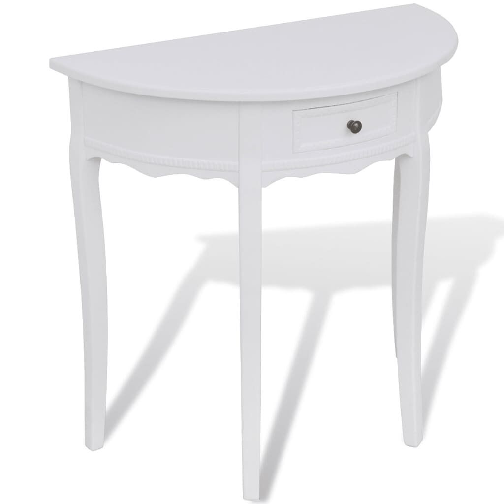 $280.11This sturdy and durable console table will make a great addition to your living room, dining room, or hallway. The table combines quality workmanship and functionality. Thanks to its compact design, our console table occupies very little space. The drawer provides you with additional space for your belongings. This durable console table is constructed from high-quality MDF and pine, and has a white paint finish.