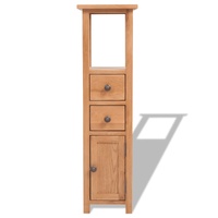This wooden corner cabinet will add a great addition to your decor and is highly functional. It provides ample storage space for your personal belongings, helping to keep your room tidy. The extra tall design with 2 smoothly running drawers and 1 storage compartment with door is ideal for storing all kinds of small items like books, DVDs, notepads, pens, and other knick-knacks. It can also be used as a bathroom cupboard, bathroom tower, bedside table, sideboard, etc. Made of solid oak, it has a rustic look and feel and is very durable.