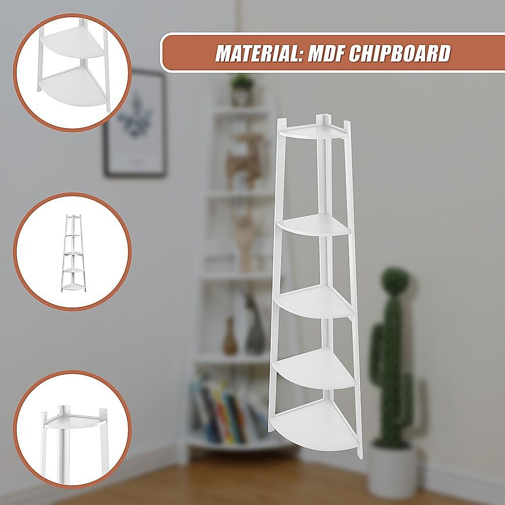 $133.47If you love the no-fuss lines of modern design, this corner shelf by Randy Travis Machinery is a must-have. Done in neutral white, it will turn a forgotten corner into a stunning focal point, showcasing your books, collectables, and plants in a neat, orderly display. Its lopped-off triangular design tapers to the top, contrasting with the curves of the semi-circular shelves.