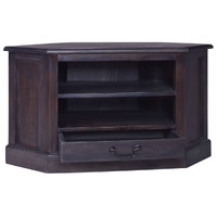 The wooden corner TV cabinet adds a classical look to your bedroom, living room and any other room. This corner cabinet is made from solid mahogany wood, making it sturdy and stable. This low cupboard also perfectly fits in the corner of a room to save space. Additionally, the lowboard has 1 drawer and 2 open shelves, providing ample storage space for keeping your multimedia appliances, books and other items well organised and within easy reach. Important note: Colours and grains may vary from piece to piece, making each piece unique. The delivery is random, ensuring the exclusivity and individuality of your product.