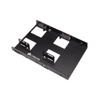 $27.21Corsair Dual SSD Mounting Bracket Support 3.5\' drive bay THE SSD MOUNTING BRACKET THAT SOLVES TWO PROBLEMS AT ONCE The Corsair Dual SSD Mounting Bracket solves the problem of upgrading desktop PCs which only have 3.5\' hard drive bays. Installation is straightforward: place one or two SSDs into the bracket with the screws provided, and then attach the bracket to any standard 3.5\' drive bay. The black anodized aluminum looks great in any case, and it?ÇÖs designed to allow extra clearance for connecting SATA data cables without straining the connectors. The ability to stack two SSDs in the same bracket gives you additional flexibility. Even if you have just one available 3.5\' drive bay, you?ÇÖre not limited to a single solid-state drive. The adjustable mounting points support both symmetrical and asymmetrical dual SSD mounting, and it works with both 7mm and 9.5mm height SSDs. Accessory Model 1200 Weight 0.045 Product Family COMPONENT ACCESSORIES Product Name Stock PSU cables Color Black