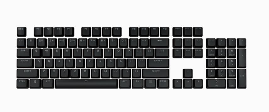 $86.47A CORSAIR PBT DOUBLE-SHOT Onyx Black PRO Keycap Mod Kit gives your keyboard added durability and personalization thanks to thick double-shot PBT plastic with textured surfaces and multiple striking color options. ULTRA DURABLE Heavy-duty PBT plastic with a textured surface resists wear and shine while providing added grip for long-term durability and performance with a sharp, modern font delivering superior keypress stability and fade-free backlit legends. STANDARD BOTTOM ROW LAYOUT This full-size keycap set is compatible with all CORSAIR mechanical and optical-mechanical keyboards with a standard bottom row, as well as all other CHERRY MX-compatible keyboards. EVERYTHING YOU NEED Comes with a full set of keycaps, convenient key puller tool, and optional silicone O-rings to soften the sound and feel of keystrokes.