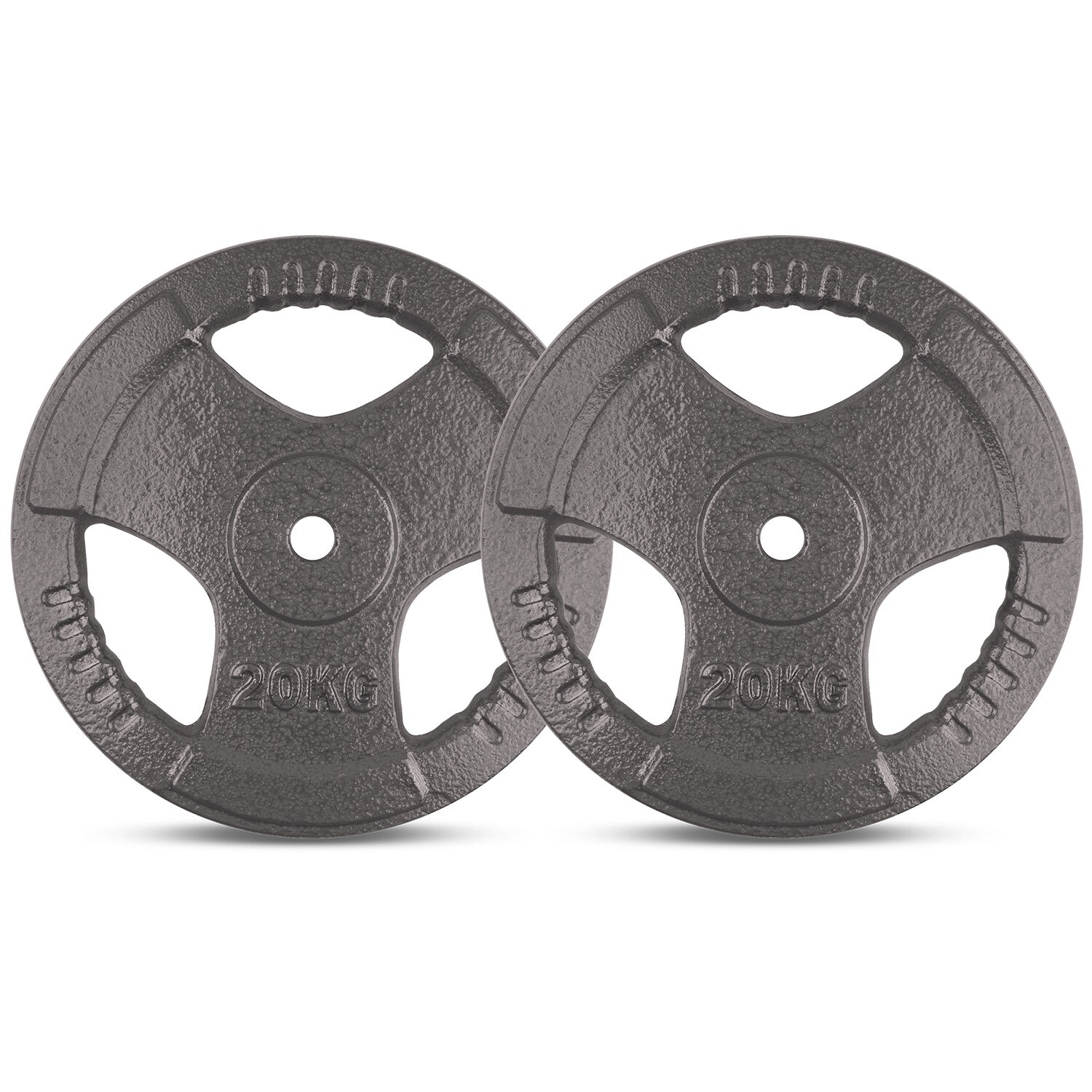 - Weights: 2 x 20kg Cast Iron Tri-Grip Weight Plate