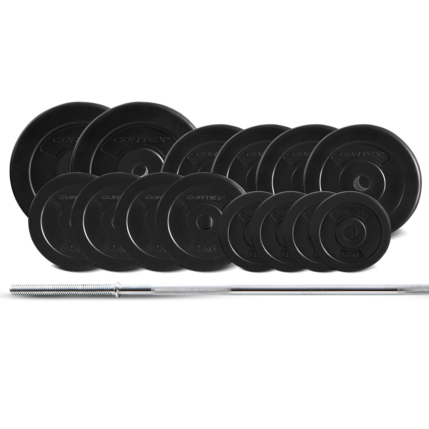 $206.14Our Cortex 25mm Standard Sized EnduraCast Weight Plates are encased with strong, durable PVC coating, built to last time and time again for your workouts. Make your training count with a versatile weight set that includes a barbell and combined 55kg of weight plates.