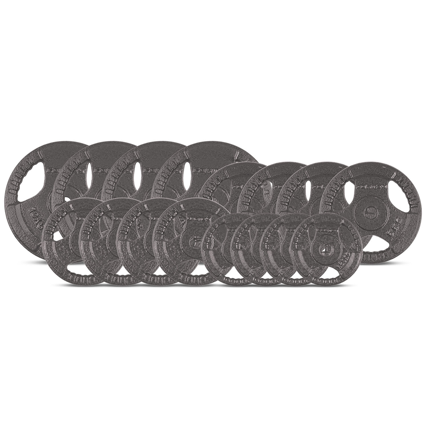 - 4 x 2.5kg Cast Iron Tri-Grip Weight Plate