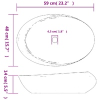 This countertop basin is a chic and timeless addition to any bathroom, washroom or powder room. Durable material: The bathroom sink, made of ceramic, has a durable surface that resists impacts, stains, and scratches, ensuring its long-lasting shine.Eye-catching patterns: This wash basin has exquisite patterns that bring a vintage, minimalist elegance and glamour, instantly refreshing your bathroom.Easy to clean: To maintain the beauty of the vanity basin, simply wipe its surface with a damp cloth. Good to know:Due to being handmade, the product may have a slightly uneven colour or an asymmetrical pattern, which makes each item unique. The delivery is random, ensuring exclusivity and individuality. Additionally, the size may vary within a 2-3 cm tolerance.