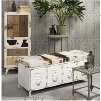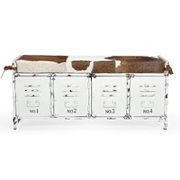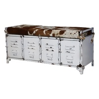 NOW $746.31Fans of cowhide and shabby chic will rejoice at the sight of our Cowhide Iron Locker Bench. This rustic and retro piece is oozing with style thanks to the unique combination of an up-cycled iron locker with cowhide bench covering. A great piece for hallways, dining tables, bedrooms and entertaining spaces