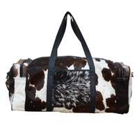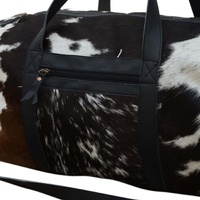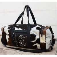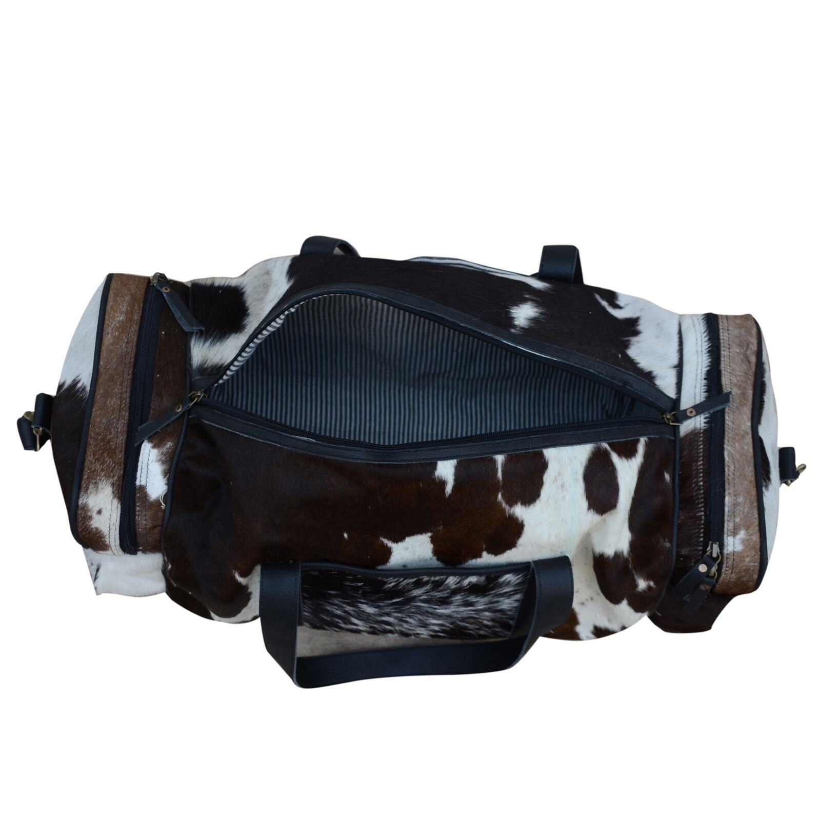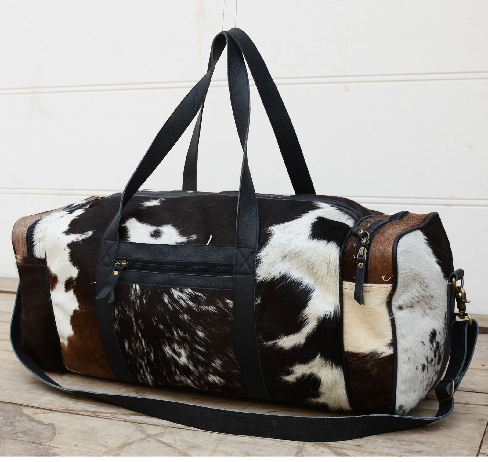 $290.45Roomy but stylish, our Cowhide Patch Overnight Bag is a sharp-looking essential for overnight stays. Its just the right size to fit all your essentials for day wear, and evening wear. It features are its contrasting cowhide patches, a full zipper, side zipper and handles and adjustable body strap in a rich navy leather.
