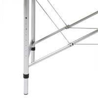 The 4-zone foldable massage table with aluminium frame is suitable for massages, shiatsu and reiki. The cushion, padded with high-density foam, is highly comfortable, and resistant to disinfectants and massage oil. The headrest and the height of the massage table are adjustable, which enables its user to lie comfortably and the massage therapist to select the desired working height. The massage table is easy to assemble. It can be folded into the shape of a suitcase. A carrying bag is included for easy transport and storage.