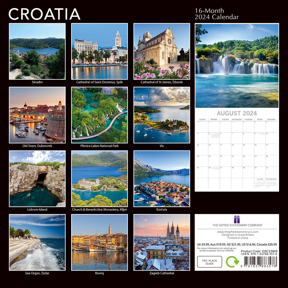 Croatia - 2024 Square Wall Calendar 16 Months Premium Planner Xmas New Year Gift