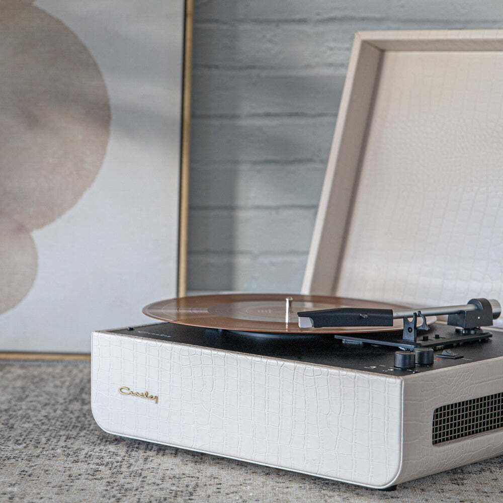 A callback to the age of old Hollywood glamour, the Mercury Turntables high-end design will stop you in your tracks. Inspired by a vintage humidor, the luxe finishes and textures of the 3-speed turntable propel it light-years beyond your average record player. You can almost hear the ice cubes clinking in a bourbon glass while a Rat Pack member croons in the background! The Mercury boasts built-in full-range stereo speakers, RCA and Bluetooth output, and a headphone jack, giving you multiple options for how you want to listen. Not in a vinyl mood? With the built-in Bluetooth receiver, you can stream your digital music wirelessly. Unleash your inner Hollywood star or starlet and revel in the decadence of the bewitching Mercury Turntable.