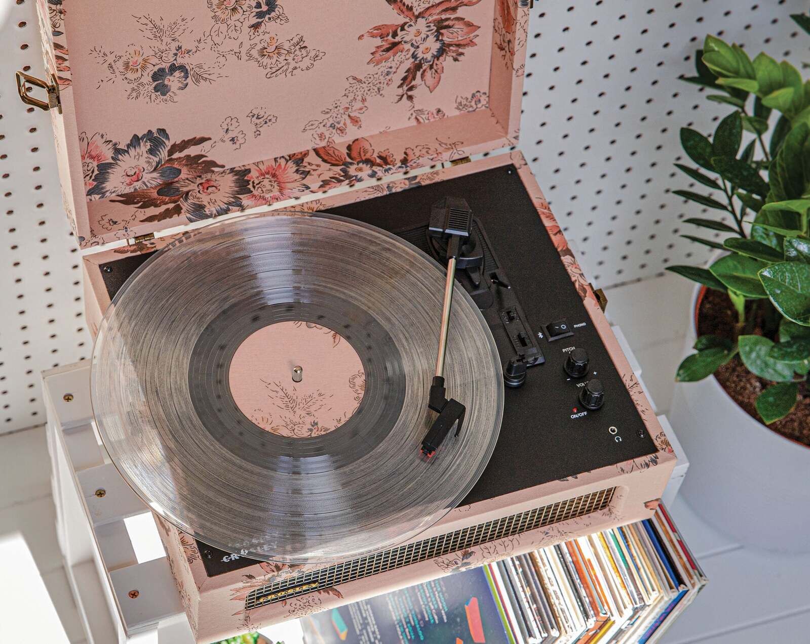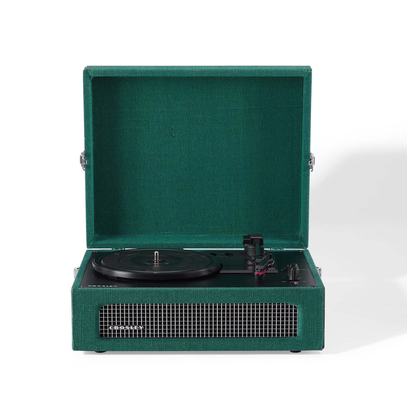 $125.95Join Crosley's mission to bring analogue music to the masses with the Voyager three-speed turntable. The clean, vintage-inspired aesthetic fits into any space, while the lightweight design allows this record player to travel further than anyone, or anything in history." Spin 33 1/3, 45, or 78 RPM records or launch the built-in Bluetooth transmitter or receiver to send your digital music wirelessly. Discover the RCA outputs on the back that allow you to easily plug into your existing solar music system or bigger speakers to add propulsion to any party. Drop the needle on a reissue of the golden record, probe the adjustable pitch control knob to dial in the speed and prepare for blast off!