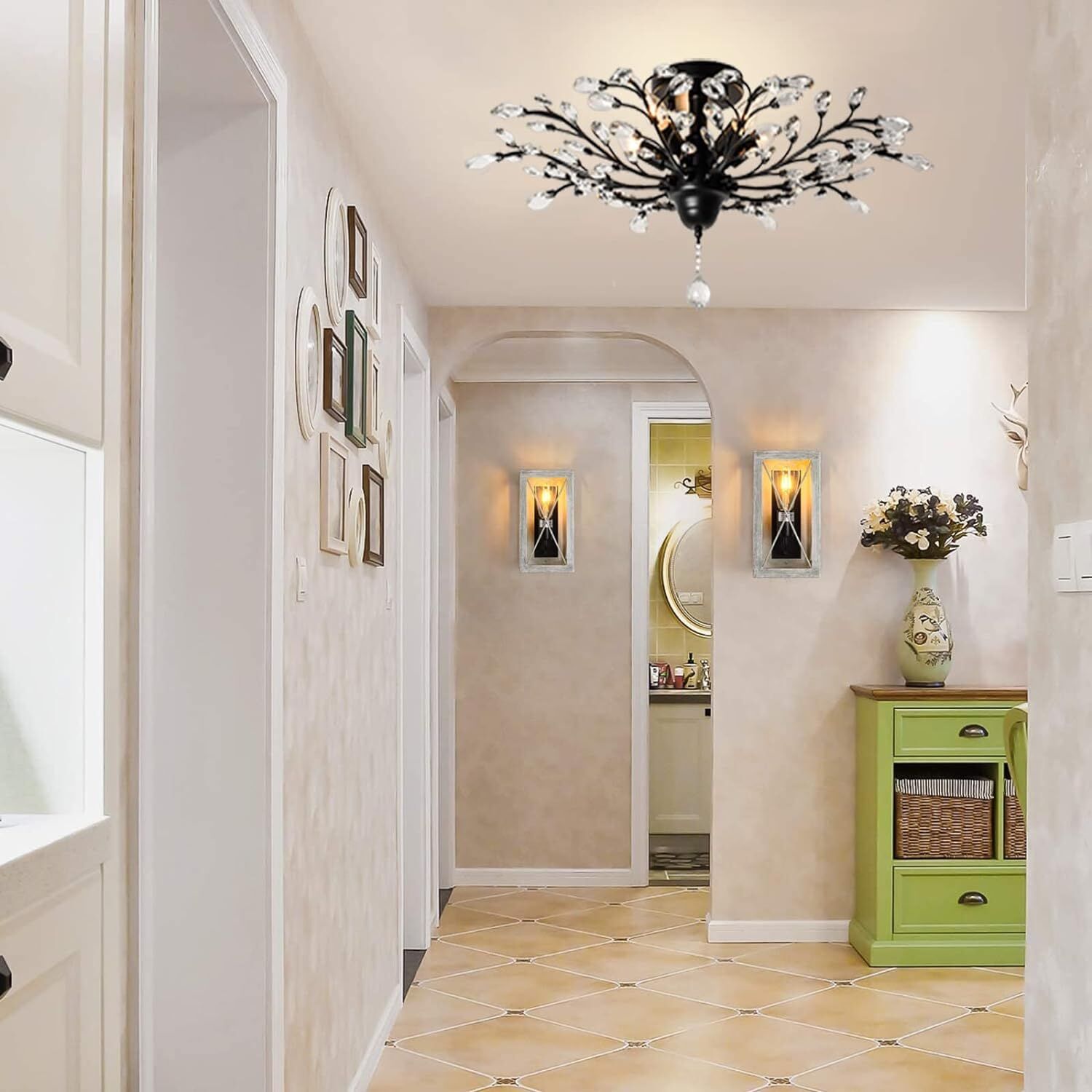 Crystal Chandelier LED Ceiling Light Fixture Black