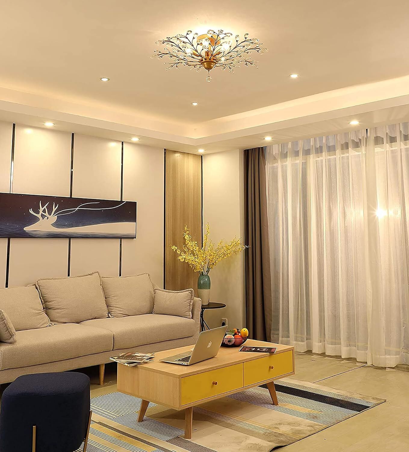 Crystal Chandelier LED Ceiling Light Fixture Gold