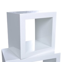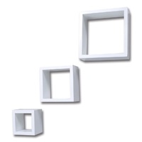 This set of 3 trendy shelves has the combination of decoration and functionality.Its retro style with the straight corners outside will add the grace to any room where you prefer.They can be either mounted on the wall or just put /piled upon the floor for your display and storage use. And thanks to its free standing/ dimension design, each unit can be placed vertically or horizontally as you wish.These white units are made of quality MDF with high gloss finish, giving you a stylish touch.Delivery includes 3 x cube shelves with all the assembling accessories in need.