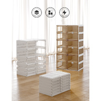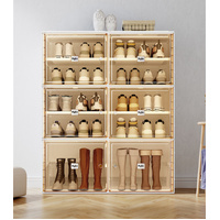 Adopt mortise and tenon design and add precision steel screws, stable and not wobbly. Shelf level load-bearing, up to 150kg, the top of the shoe storage box can also store. Double lattice door panel, large space and large capacity, building block-stacking, card slot in the middle, top and bottom splicing type, Free combination and stacking, fully meet the needs of placing all kinds of shoes. All-match home furnishing, suitable for small spaces.