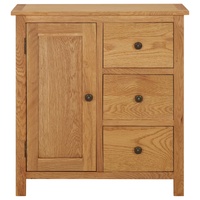 Our cupboard, with its simple, rustic look and feel, makes a great addition to your home decor. This side cabinet is expertly crafted from solid oak wood and MDF, making it durable and functional. With one door and three drawers, our side cabinet provides ample storage space for your personal belongings to help keep your room tidy. It can also be used as a sideboard.