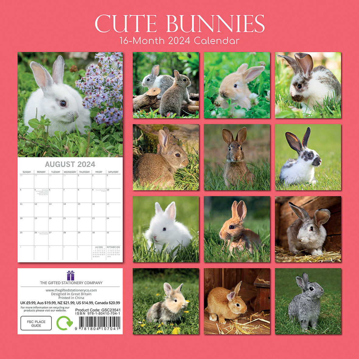 Cute Bunnies - 2024 Square Wall Calendar Pets Animals 16 Months Premium Planner