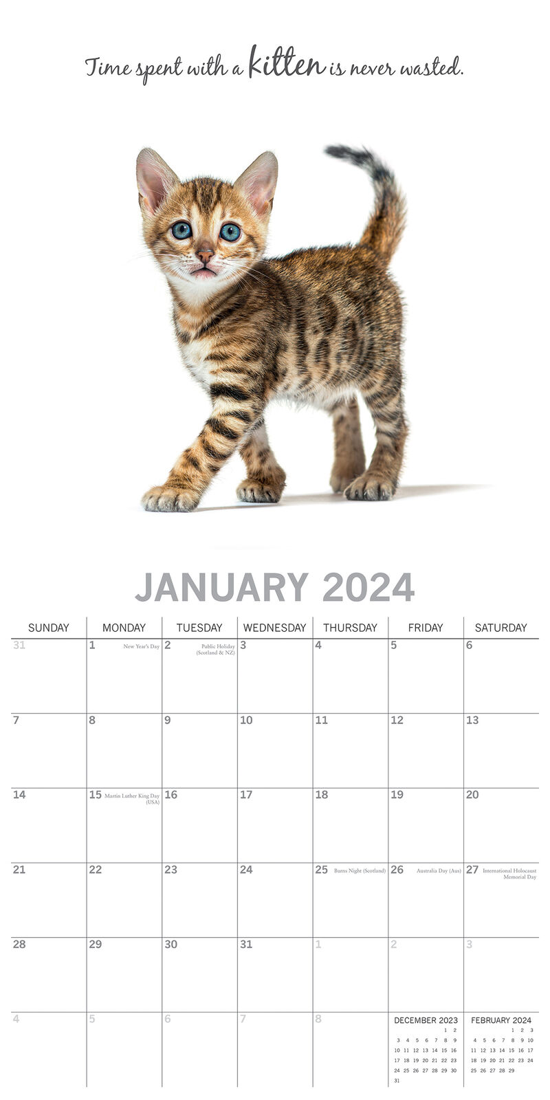 Cute Kittens - 2024 Square Wall Calendar Pets Animals 16 Months Premium Planner