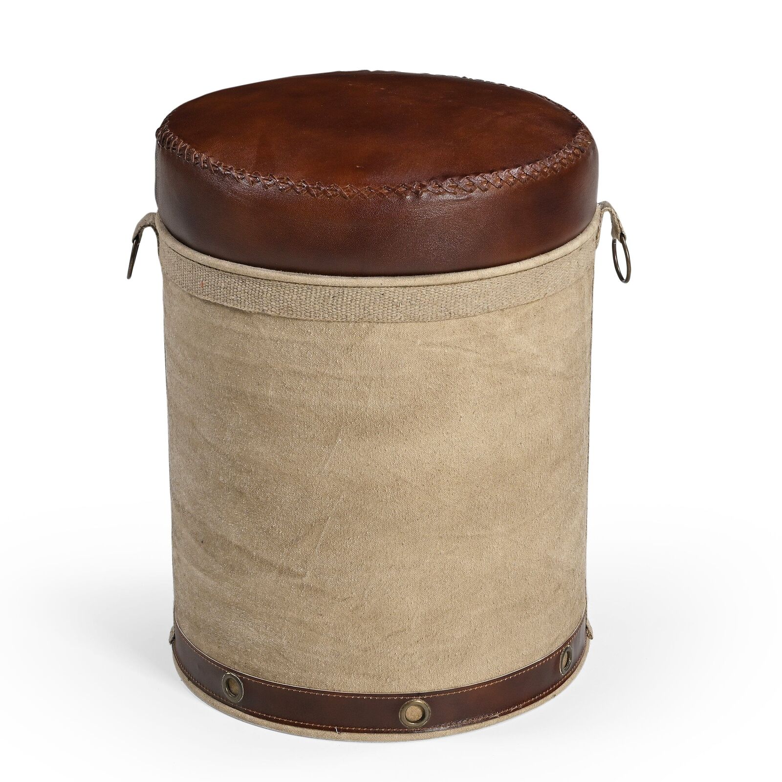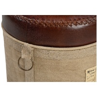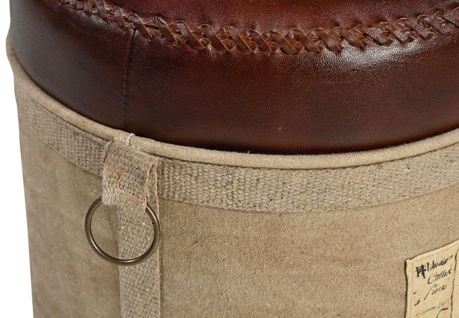 NOW $153.17Canvas and leather are an inspired combination in our Cylindrical Chateau Ottoman. The round ottoman features an exquisite leather top, with a canvas base that includes a vintage french motif. This is the perfect addition to your French Provincial collection.