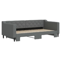 This 2-in-1 daybed with trundle, serving as both a sofa and bed, makes a practical and eye-catching addition to your living room or bedroom. Versatile daybed: The sofa bed functions as a sofa during the day and easily converts into a double bed at night by pulling out the trundle, providing a convenient solution for hosting guests and maximising space.Durable fabric and solid construction: This day bed sofa has a sturdy frame made of wood and metal and is upholstered in durable and comfortable fabric.Modern design: The couch bed has a modern design that features clean lines, a minimalistic look, and will add a modern style to your interior! Good to know:Mattresses are not included with this bed. We do offer a various selection of mattresses. You can check our shop for matching mattresses.